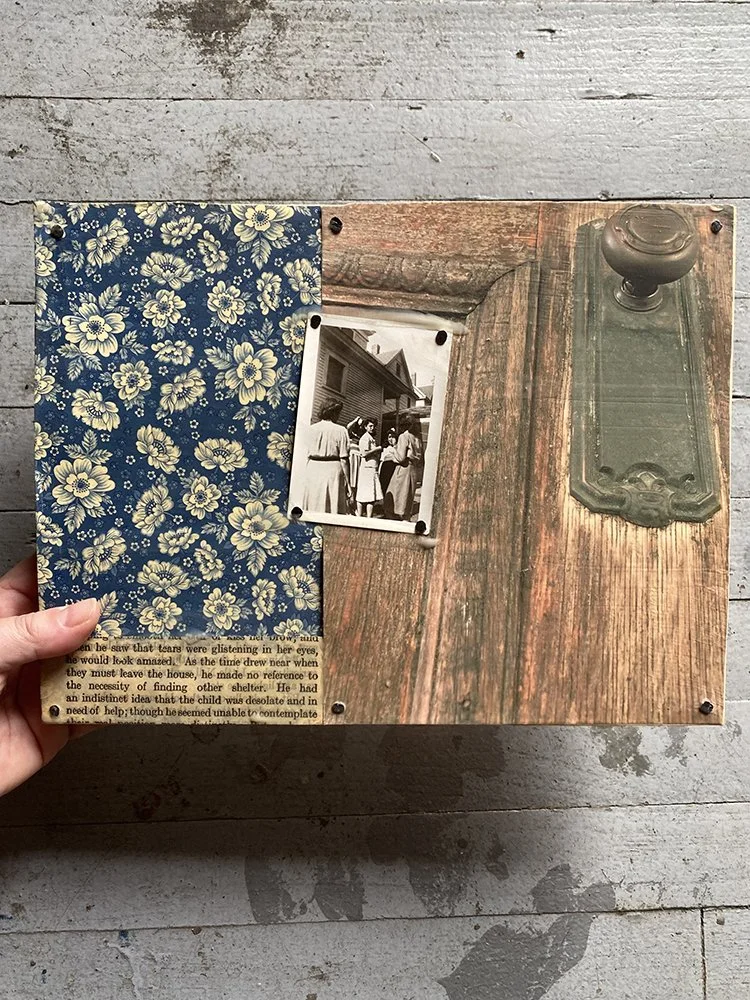 These small works incorporate found wood and wooden canvasses, encaustic, oil paint, carpet tacks, inkjet prints, gelatin silver prints, vintage ephemera, original imagery, and more. The works were made between 2008 and 2017.