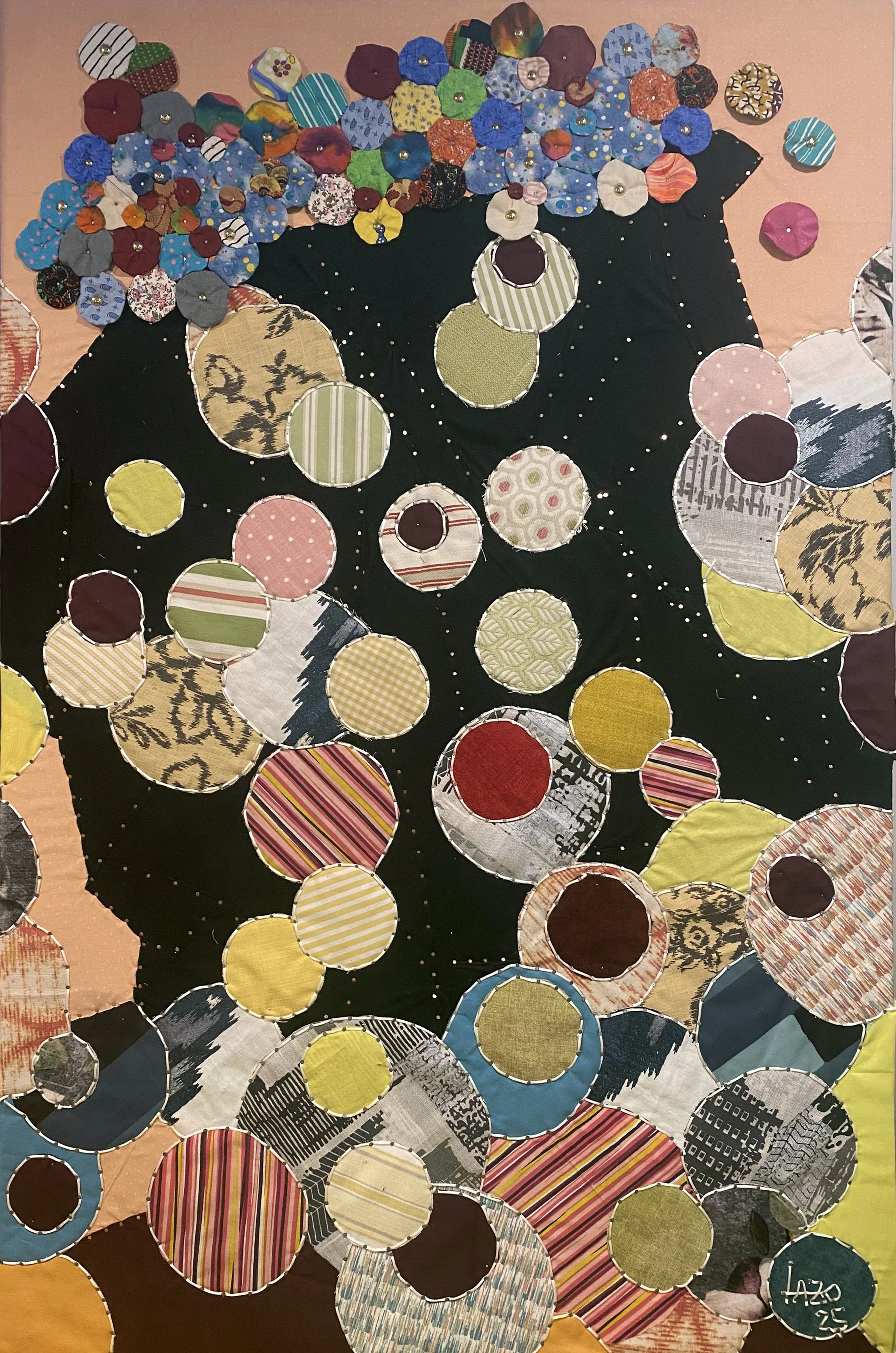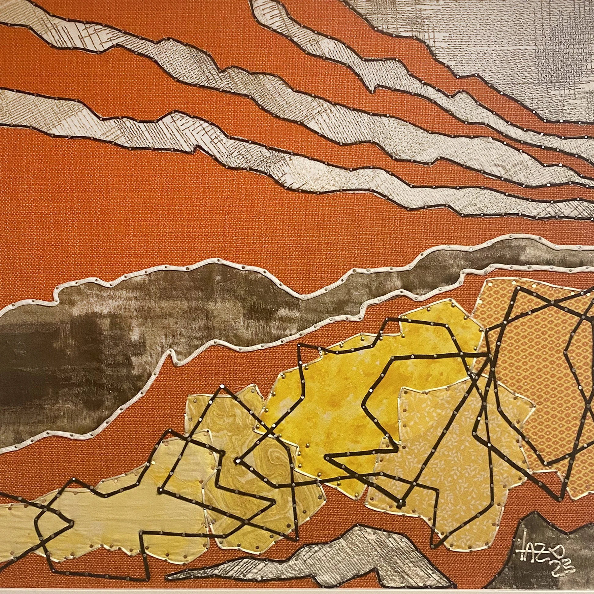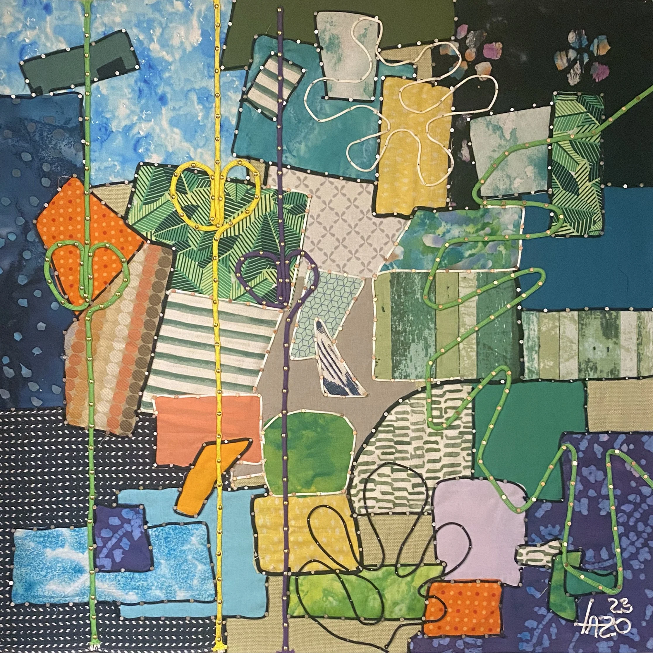 After many years of painting with acrylics and during the pandemic season, I returned to my childhood style of art: to create collages with nailed recycled fabrics. In my abstract creations, I would like to demonstrate that I can do art with unconventional materials. Moreover, I would like to show that the craft of combining fabrics, a soft and flexible material, with the strong metal nature of nails and wires can be elevated to the quality of Fine Art. The combination of those materials requires the same process of creative that I apply to my paintings with acrylics so, my work is governed by the basic principles of the color theory and design. The creative process, as the final products can demonstrate it, requires time, imagination, dedication, patience, and "upholsterer" skills.