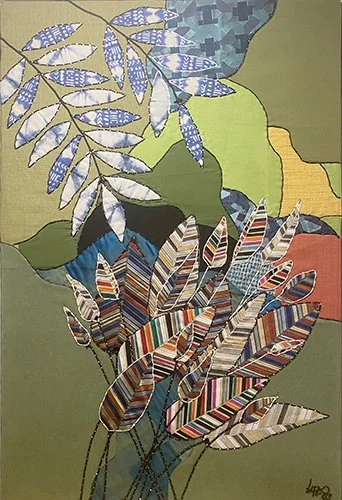 Oscar Lazo Neighborhood's gardens, 2023 Nailed fabrics and cords on agglomerate plastic $1,500