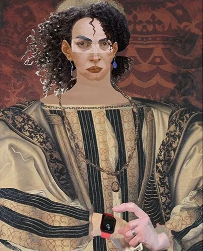 Wendy Seller Experiencing Royalty, 2022 Digital collage w/gouache paint & photography, archival pigment print on Canson Platine Fiber Rag paper, framed with museum glass $3,500